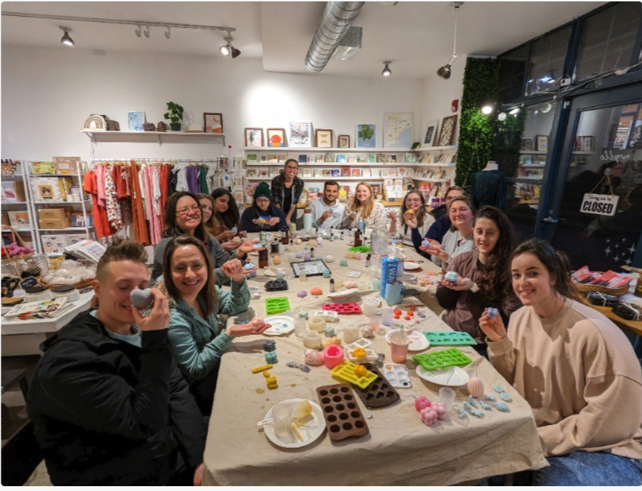 All materials are included and you’ll get to take your finished candle and wax melts home at the end of the night.